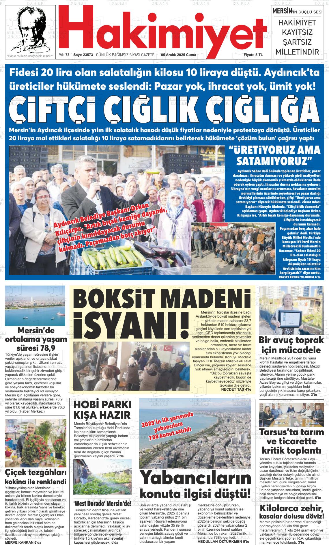 Mersin Yerel Gazeteleri 04 Aralık 2025, Perşembe Günü Manşeti